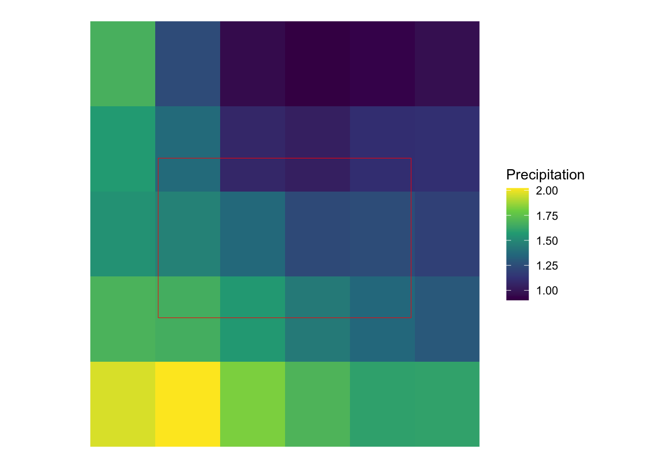 Notice all the holes in the map that we have!23. This problem can be fixed using the exactextractr package. Since it does not work with stars object, we need to convert weather to a SpatRaster objective from the terra package (you can alternatively convert to a raster object).