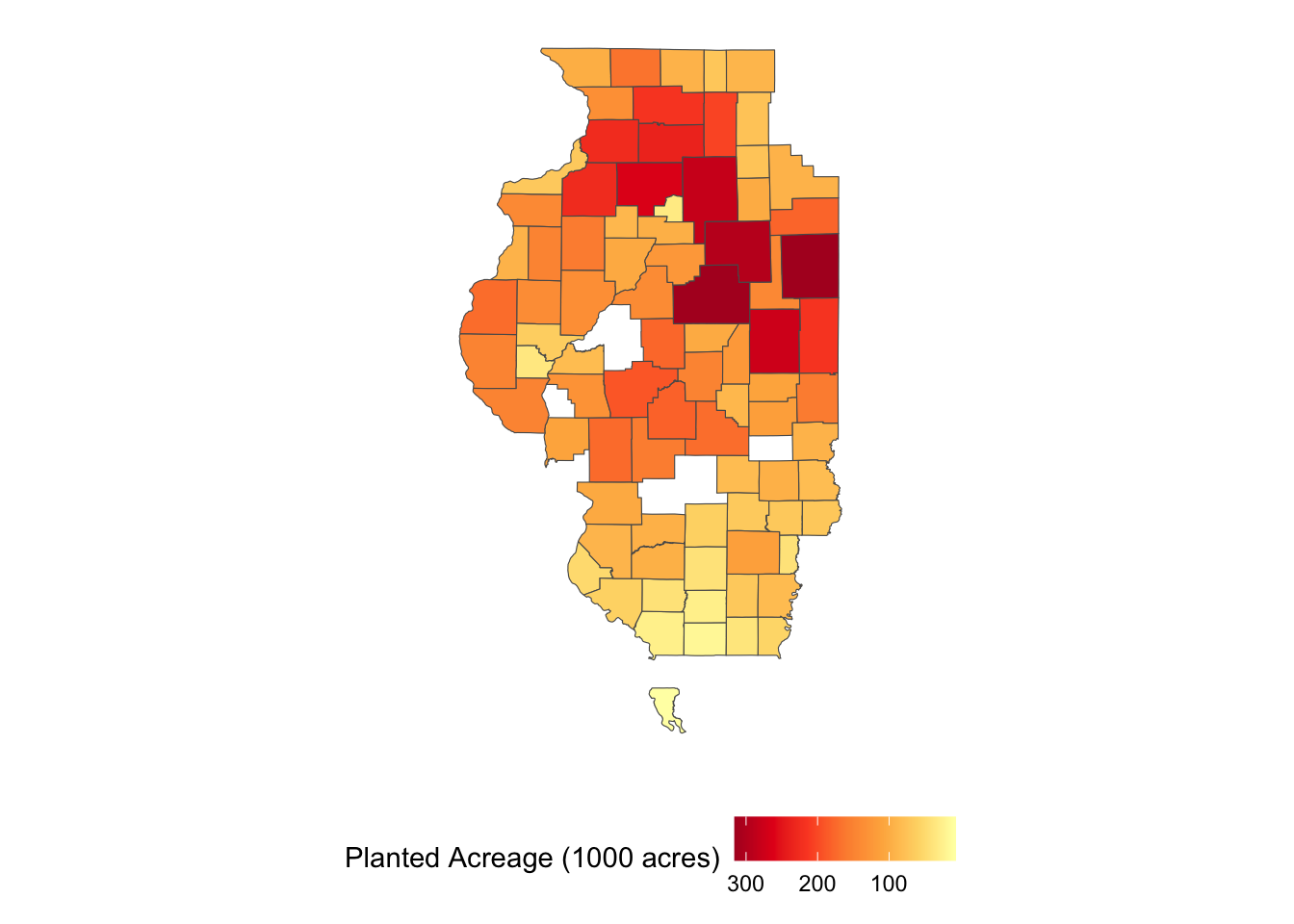 3 For our geographic focus of southwest Nebraska, corn is the dominant crop type. Irrigation for corn happens typically between April through September. For example, this means that changes in groundwater level (\(y_{i,2012} - y_{i,2011}\)) captures the impact of groundwater pumping that occurred April through September in 2011.