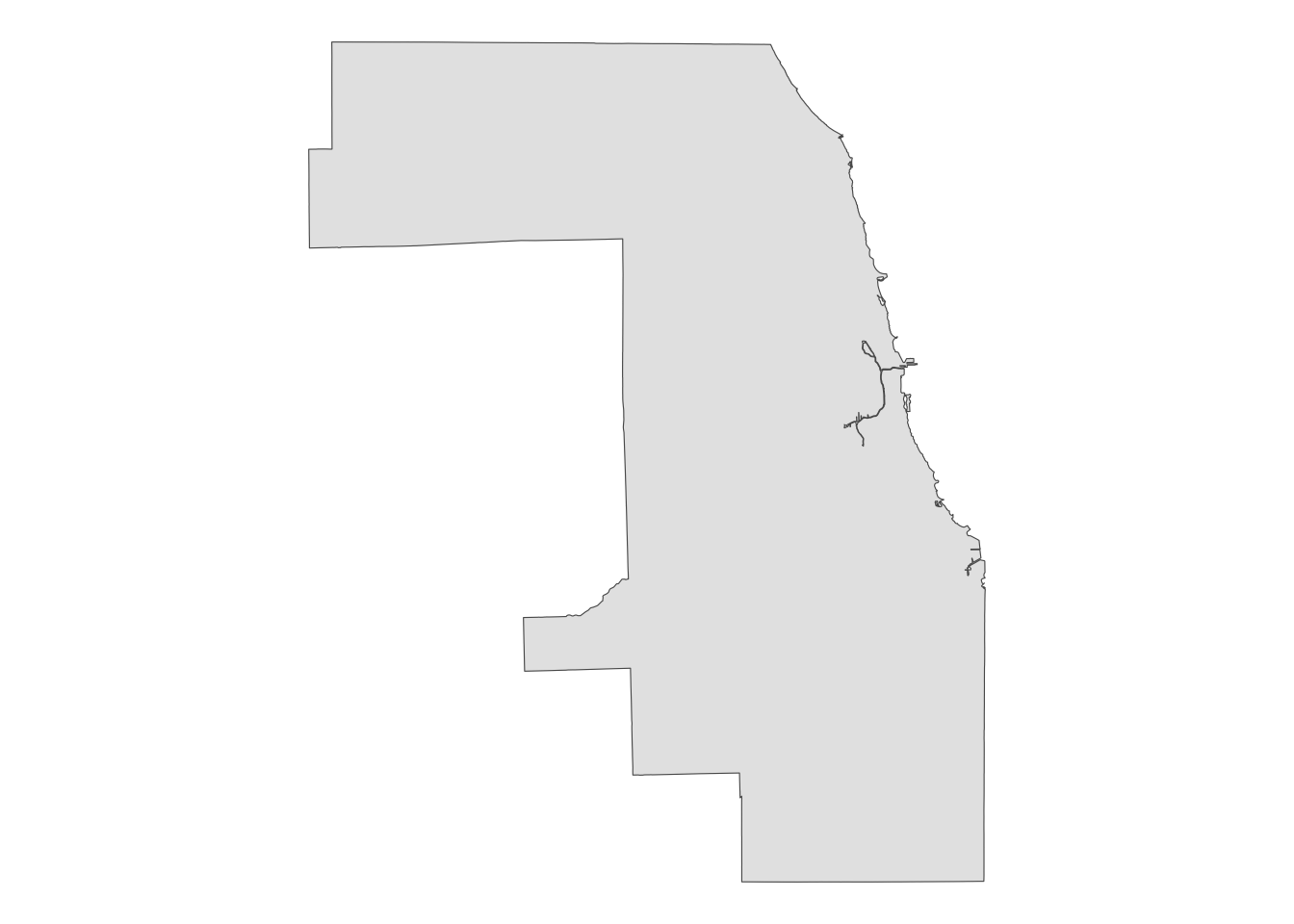 When you focus on a single county, you can see that county borders in this data are fairly detaield. Let’s look at the Cook county (Figure 2.16).