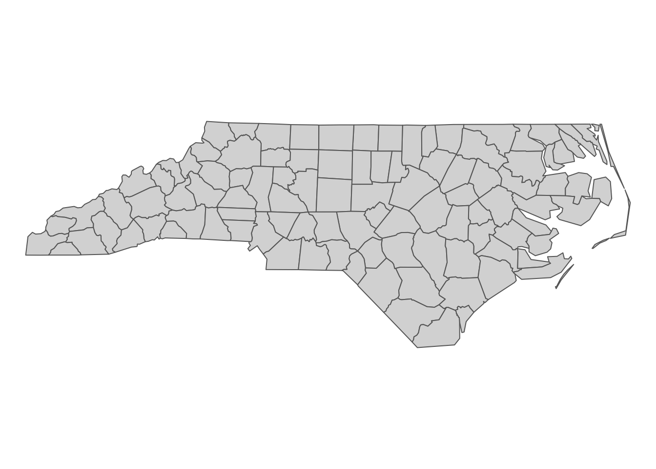 Here we learn how the sf package stores spatial data along with the definition of three key sf object classes: simple feature geometry (sfg), simple feature geometry list-column (sfc), and simple feature (sf). The sf package provides a simply way of storing geographic information and the attributes of the geographic units in a single dataset. This special type of dataset is called simple feature (sf). It is best to take a look at an example to see how this is achieved. We use North Carolina county boundaries with county attributes (Figure 2.1).