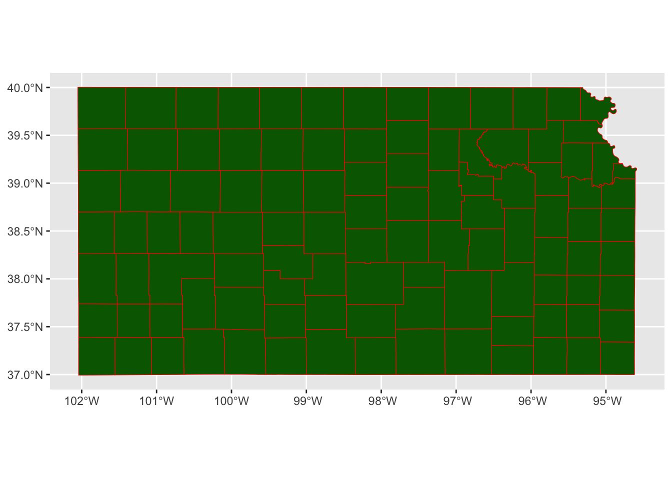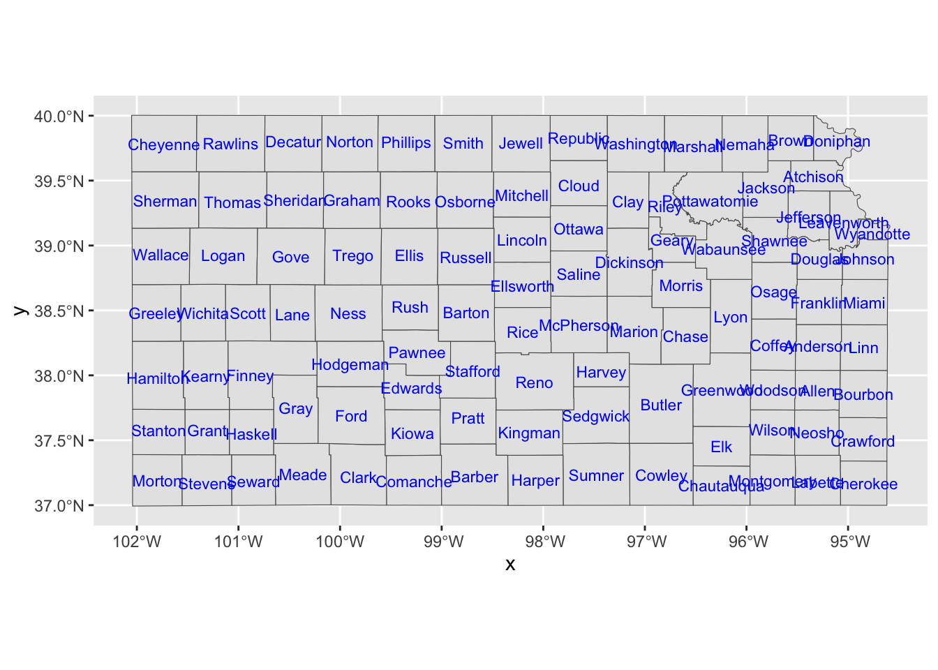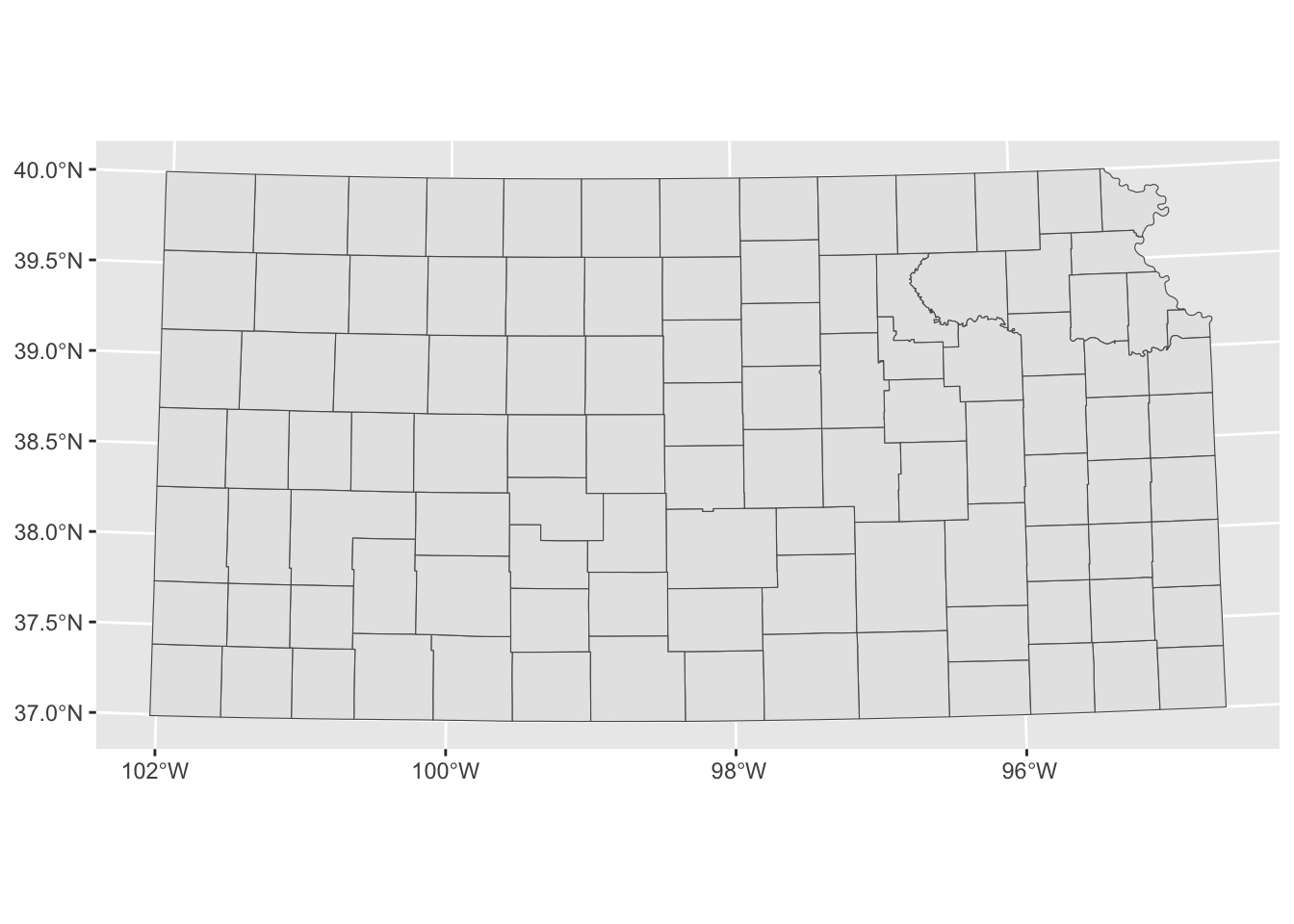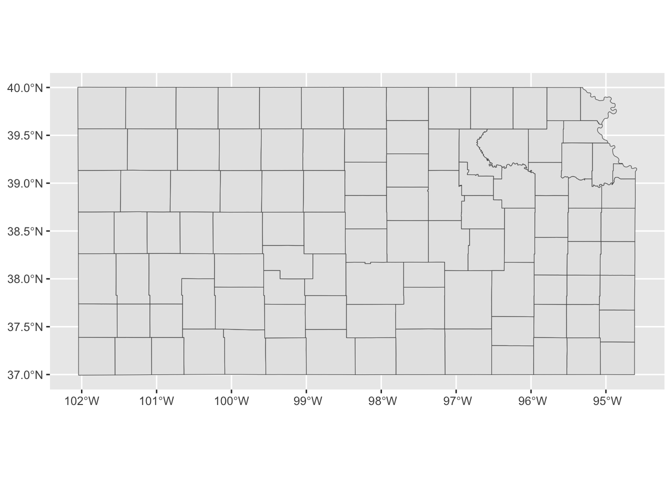 tigris::counties(state = "Kansas", cb = TRUE, progress_bar = FALSE) %>%