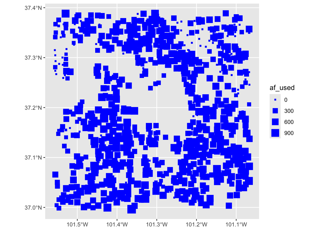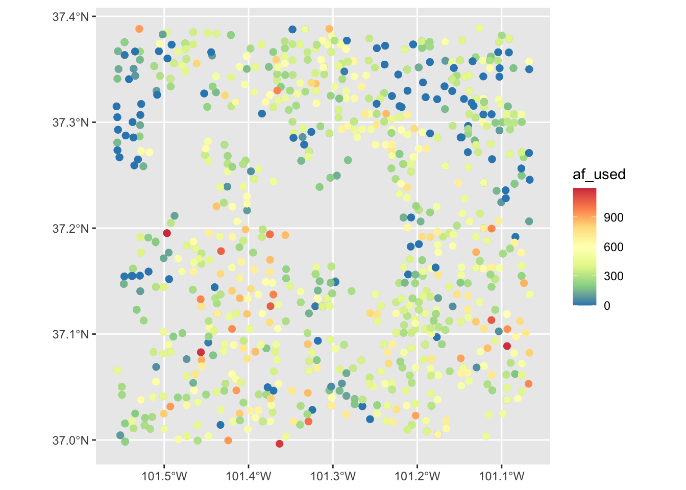 af_used: total annual groundwater pumping at individual irrigation wells