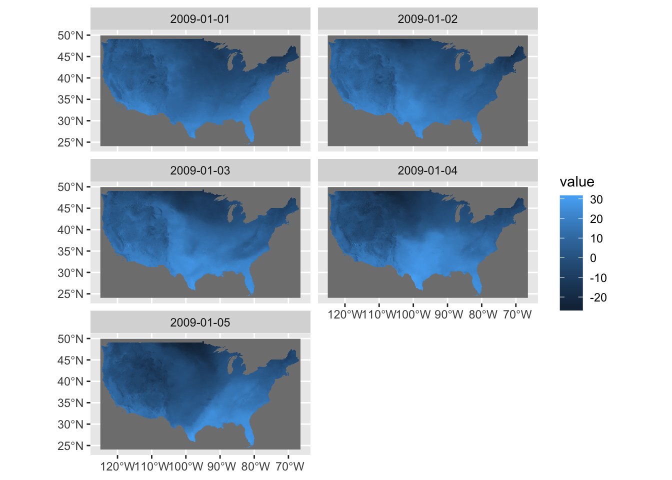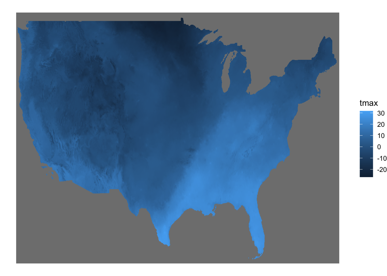Finally, another great package for mapping is the tmap package (package website). It also follows the grammar of graphics like ggplot2, and those who are already familiar with ggplot2 will find it very intuitive to use. Given that the package website and Chapter 9 of Geocomputation with R already have great treatments of how to create maps with the package. This book does not cover this topic.