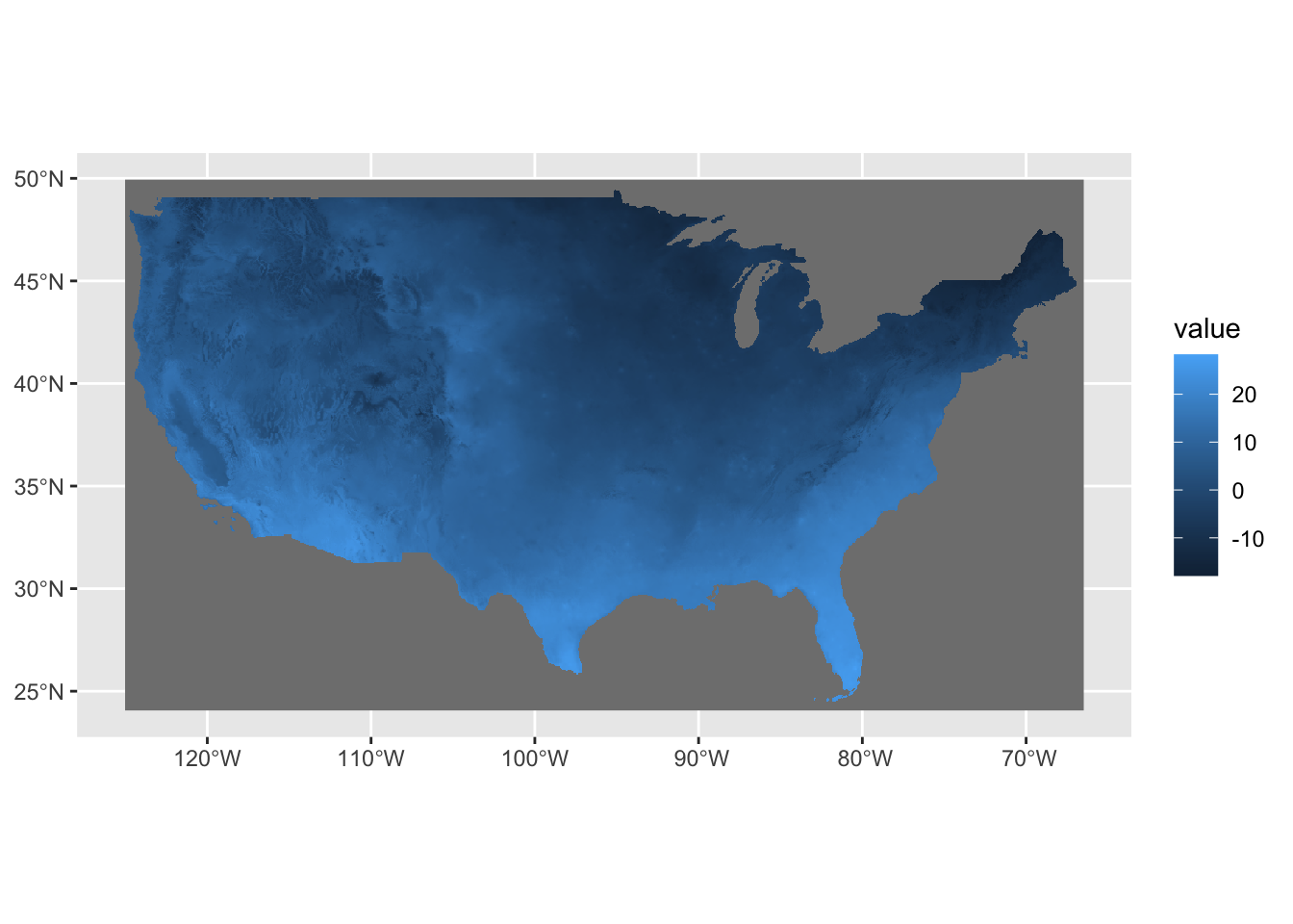 In previous chapters, we explored how to quickly create simple maps using vector and raster data. This section will focus on using ggplot2 to produce high-quality maps suitable for publication in journal articles, conference presentations, and professional reports. Achieving this level of quality requires refining the map’s aesthetics beyond default settings. This includes choosing appropriate color schemes, removing extraneous elements, and formatting legends. The focus here is on creating static maps, not the interactive ones commonly found on the web.