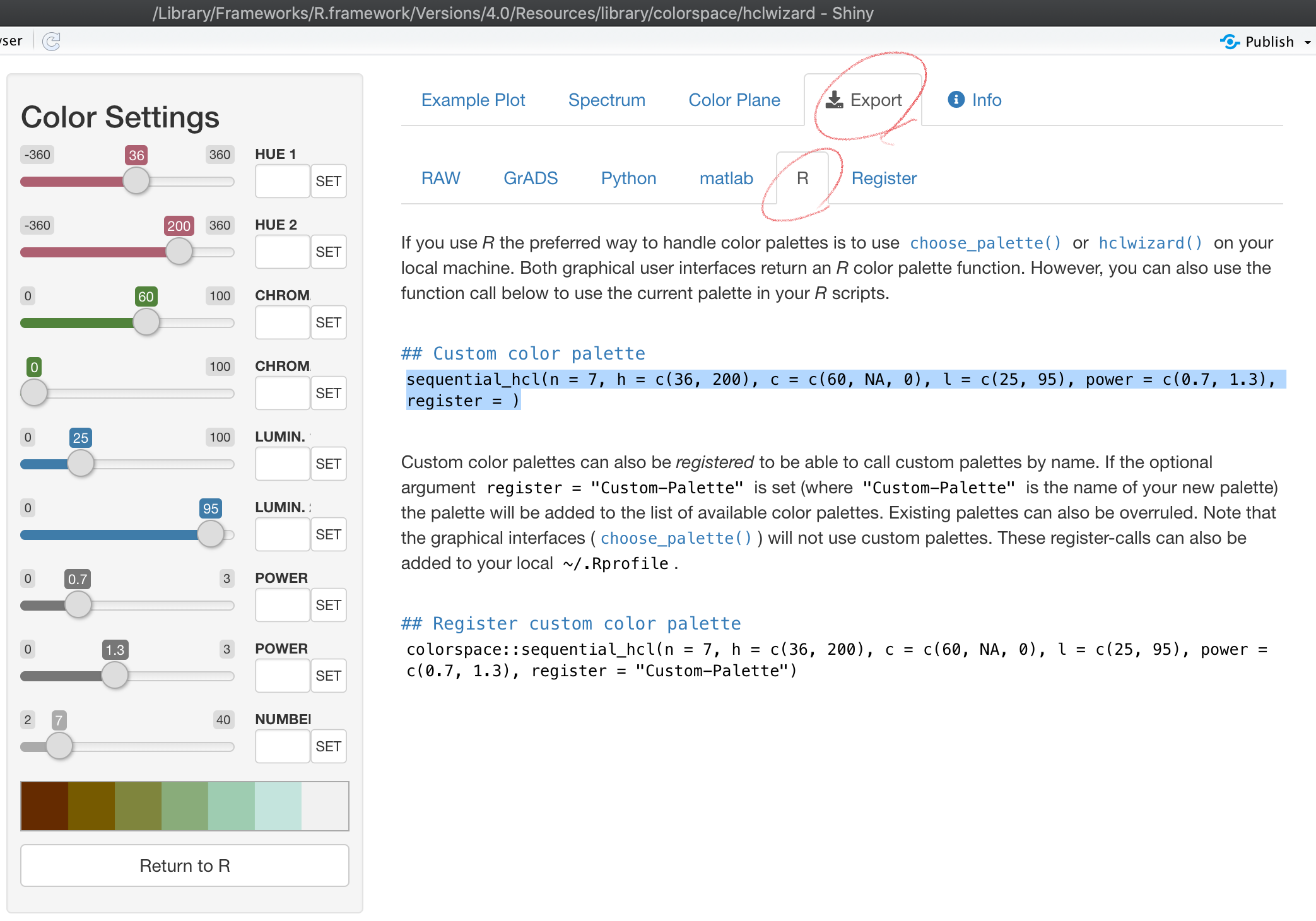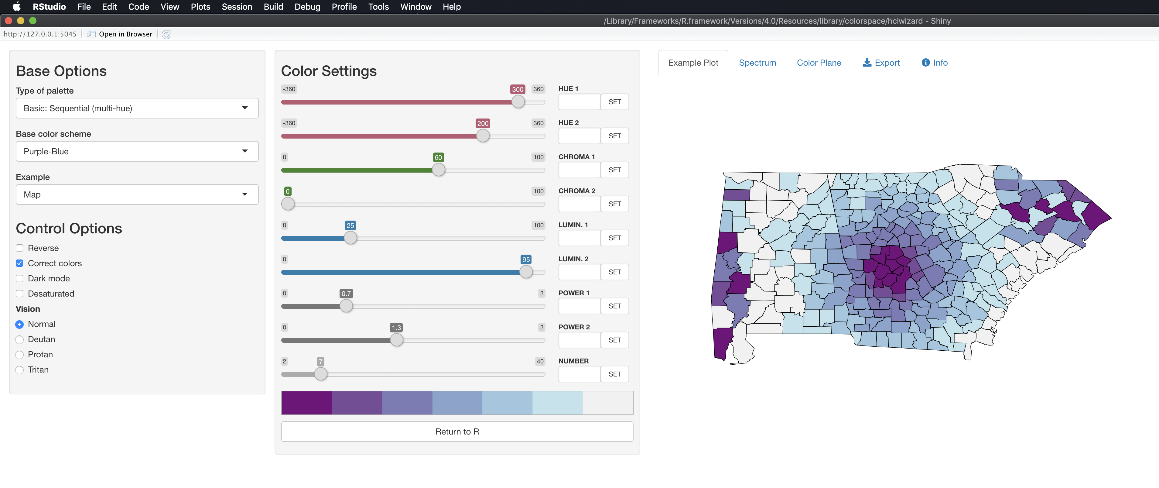 colorspace, # color scale